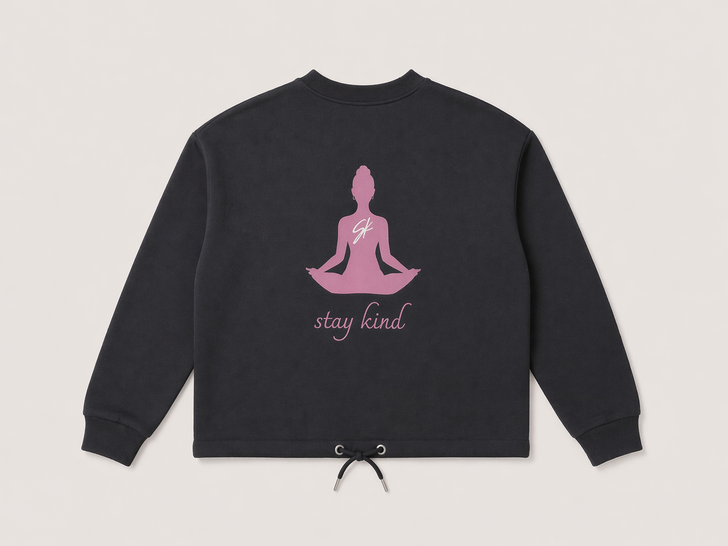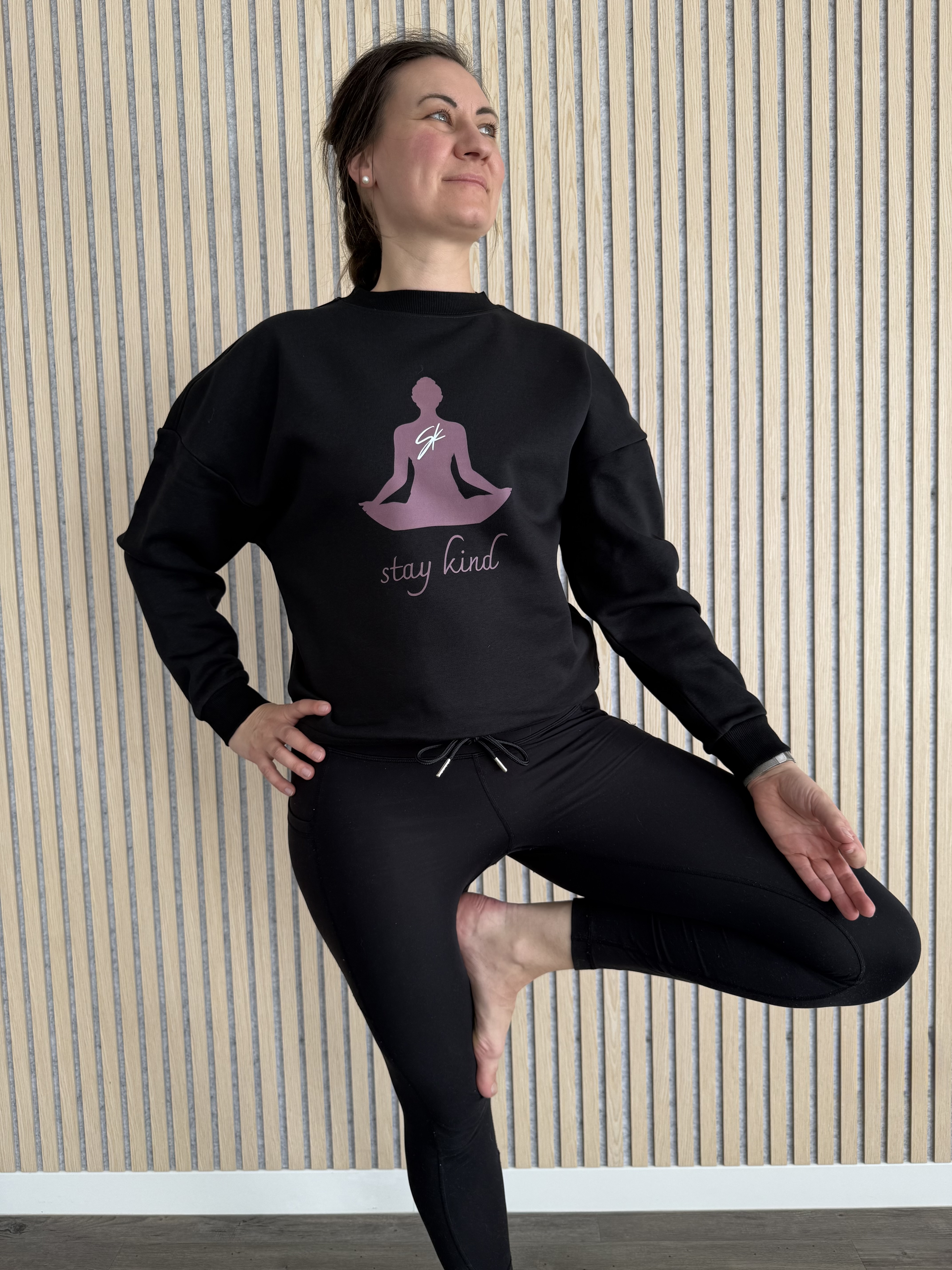 Mit seinem modernen Oversize-Schnitt sitzt es locker, bequem und stylisch zugleich. Das weiche, innen angeraute Material fühlt sich besonders angenehm auf der Haut an und macht das Oversize Sweatshirt zum perfekten Begleiter für kühle Tage, entspannte Stunden oder deinen Weg zur Yogastunde.